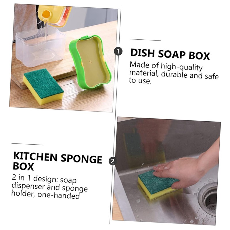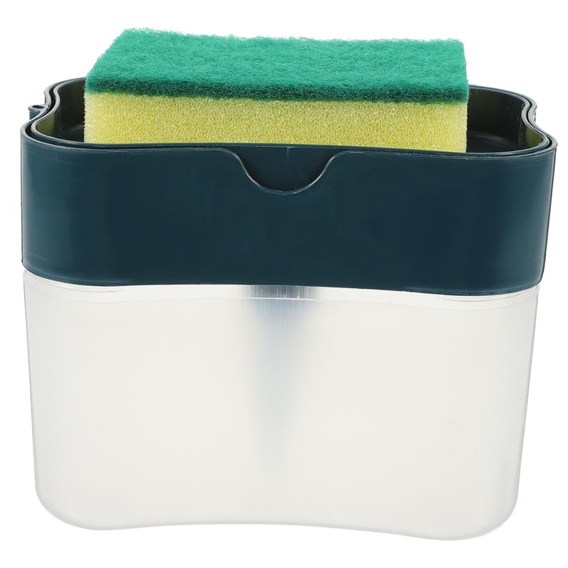 -2 in 1 design: soap dispenser and sponge holder, one-handed operation, very convenient dishwashing sponge box.