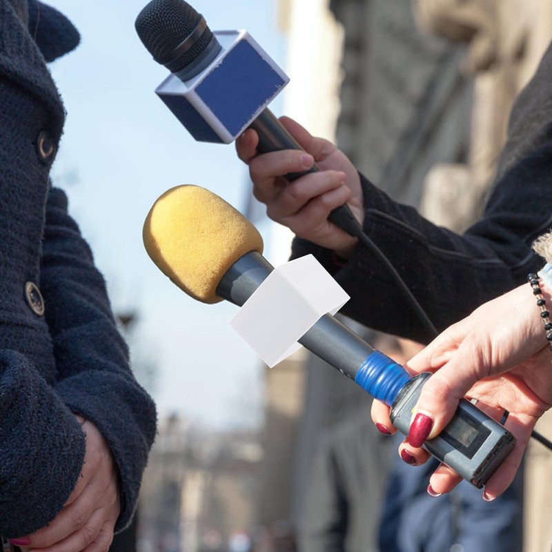 STOBOK 2 Pcs Microphone Flag Station Portable Square Cube Interview Mic Microphone Logo Flag Station Equipment, ABS Material, White