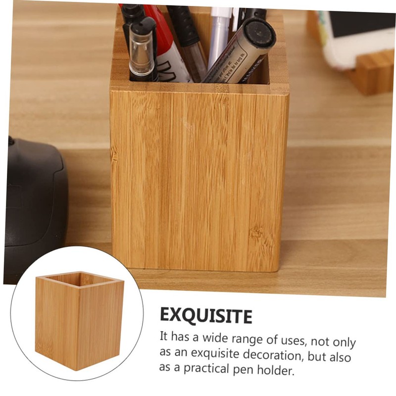 STOBOK Bamboo Storage Bucket Desk Pen Holder Organizer Kitchen Organizer Storage Basket