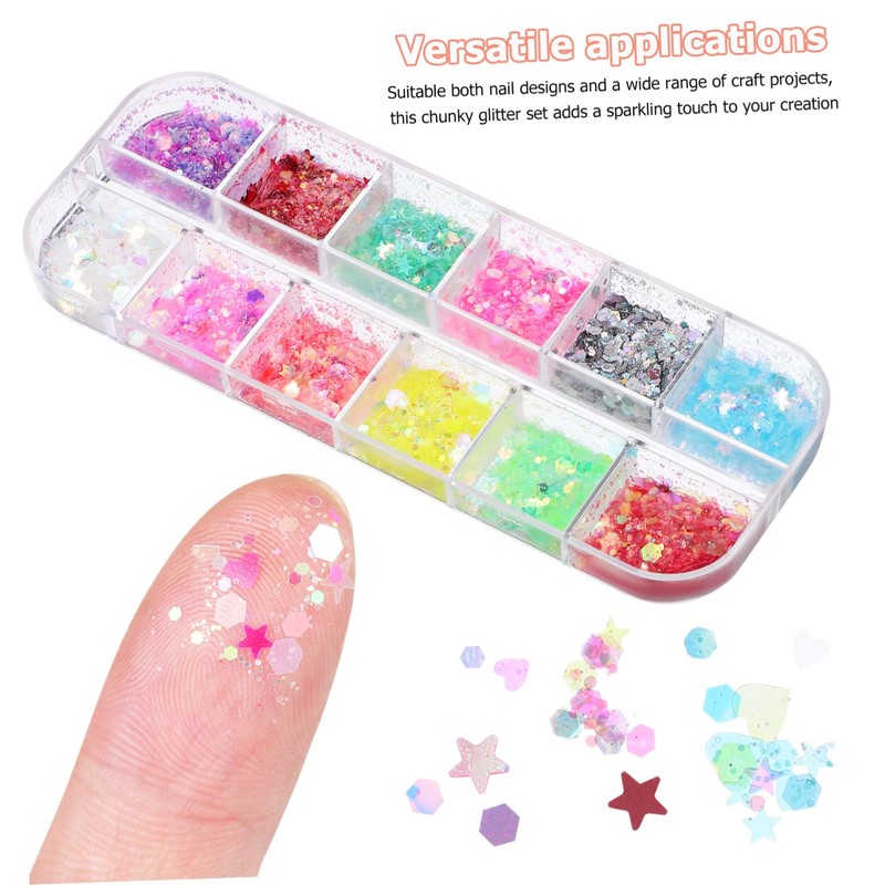 - Adaptable sparkle: this chunky glitter set is suited for both enhancing nail designs and adding a sparkling flourish to diverse craft projects,chunky glitter,nail glitter flakes