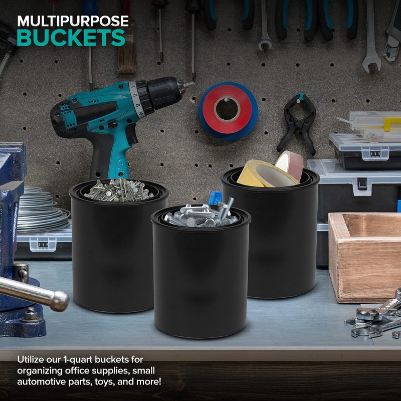 1-Quart Plastic Paint Bucket (6 Pack) - Triple Lock Airtight Seal - Minimizes Skimming - Rust Proof - Odor & Chemical Resistant - 32 Fl Oz All-Plastic Paint Can with Snap On Lid - Stock Your Home