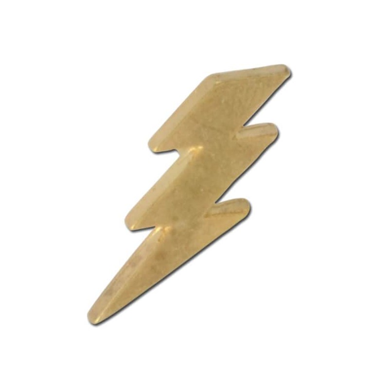 Lightning Bolt 2 - measures 1inch X 1/2inch. Cast lapel pin in choice of finishes. Military Clutch back, Individually Polybagged. Proudly made in the USA The standard Pin-Finish is Gold. Other options include Silver and may be requested when placing your order.