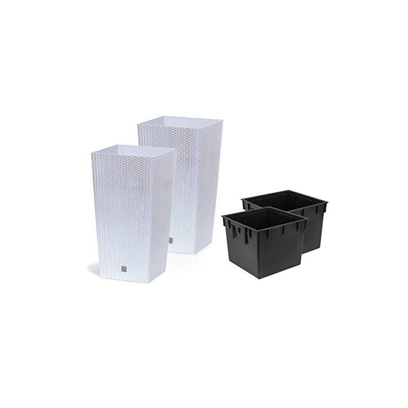 Stolmet Tall Square Planter Set of 2 Rattan Indoor/Outdoor Flower Pot + Insert in Set (7.2L, White)