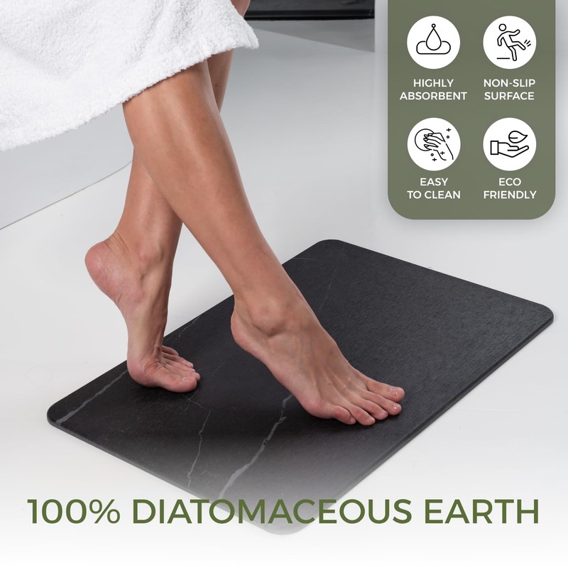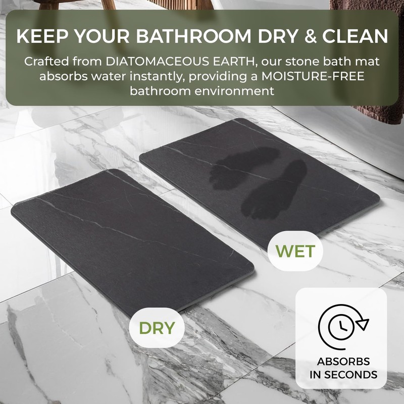 - Ultra-absorbent & fast drying: The Solacea Stone Bath Mat is crafted from diatomaceous earth, excelling as a quick dry bath mat that efficiently maintains a moisture-free bathroom, ideal for high humidity areas.