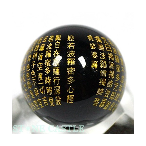 Stone Distribution Center: Onyx (Gold Carving) Hannya Heart Sutra 0.5 inches (12 mm) Natural Stone Power Stone