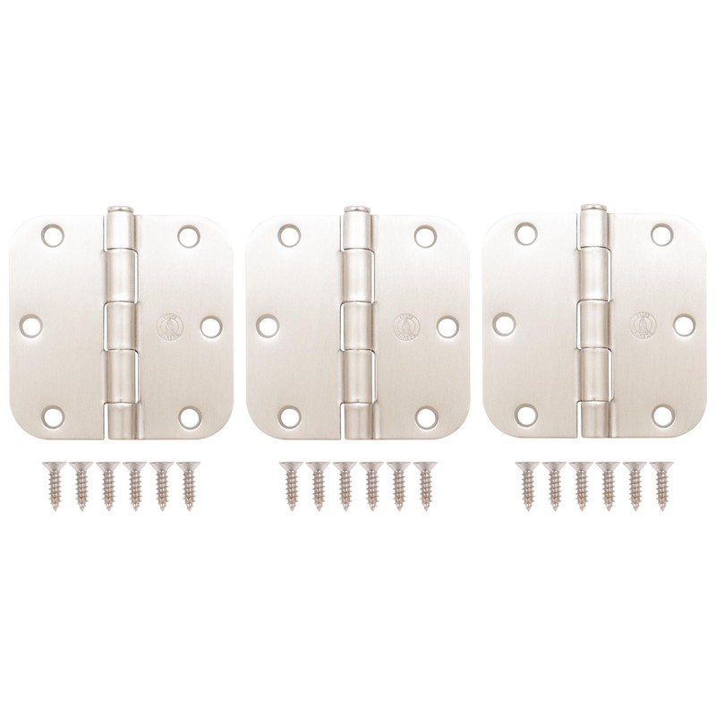 Stone Harbor Hardware 3-1/2" Door Hinges, 5/8" Radius Corner, Satin Nickel, 3-Pack