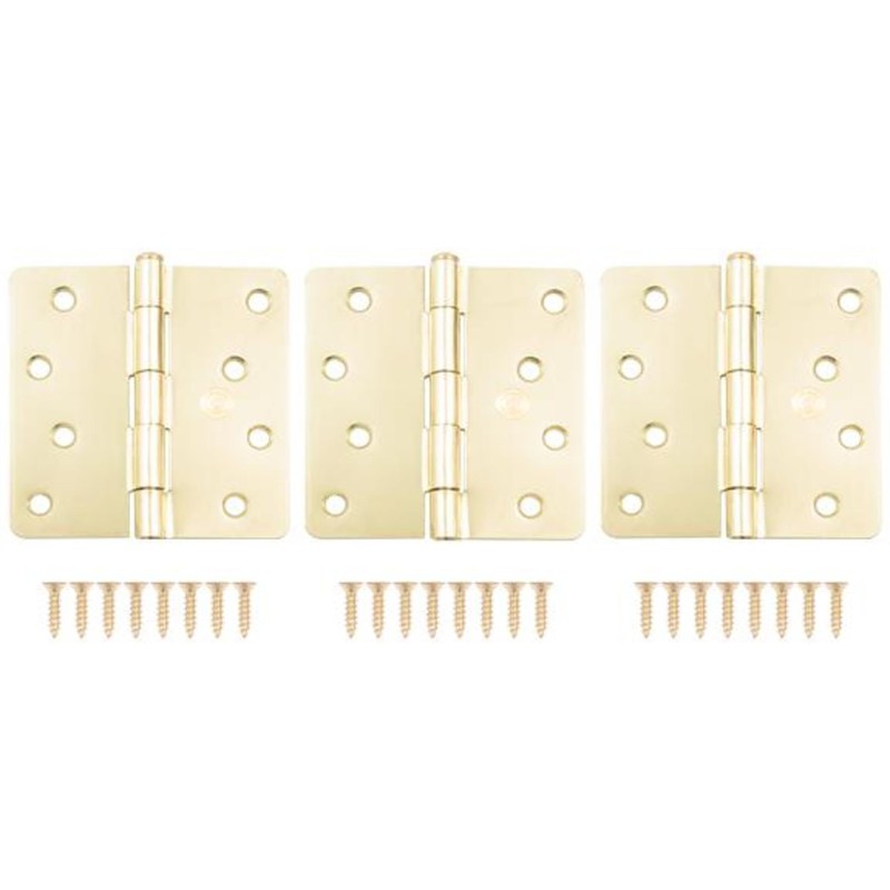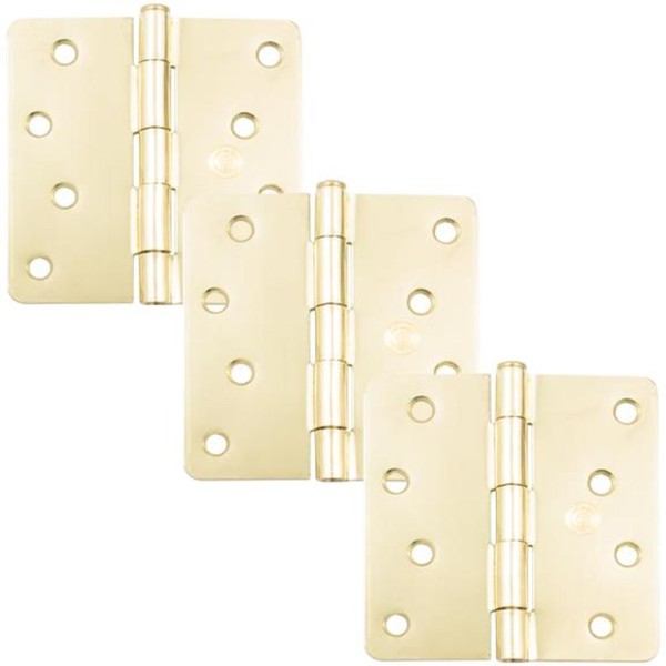 Stone Harbor Hardware 4" Door Hinges, 1/4" Radius Corner, Polished Brass, 3-Pack