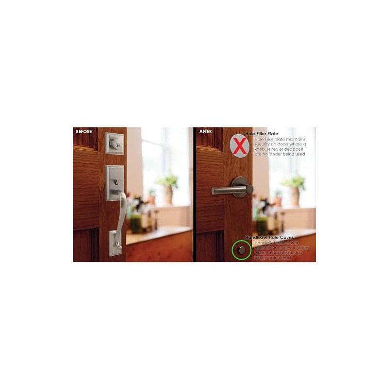 - To fill holes left by door knobs, levers, or deadbolts that are not related to specifically to handlesets, consider using our Hole Filler Plate (SKU: 50161).
