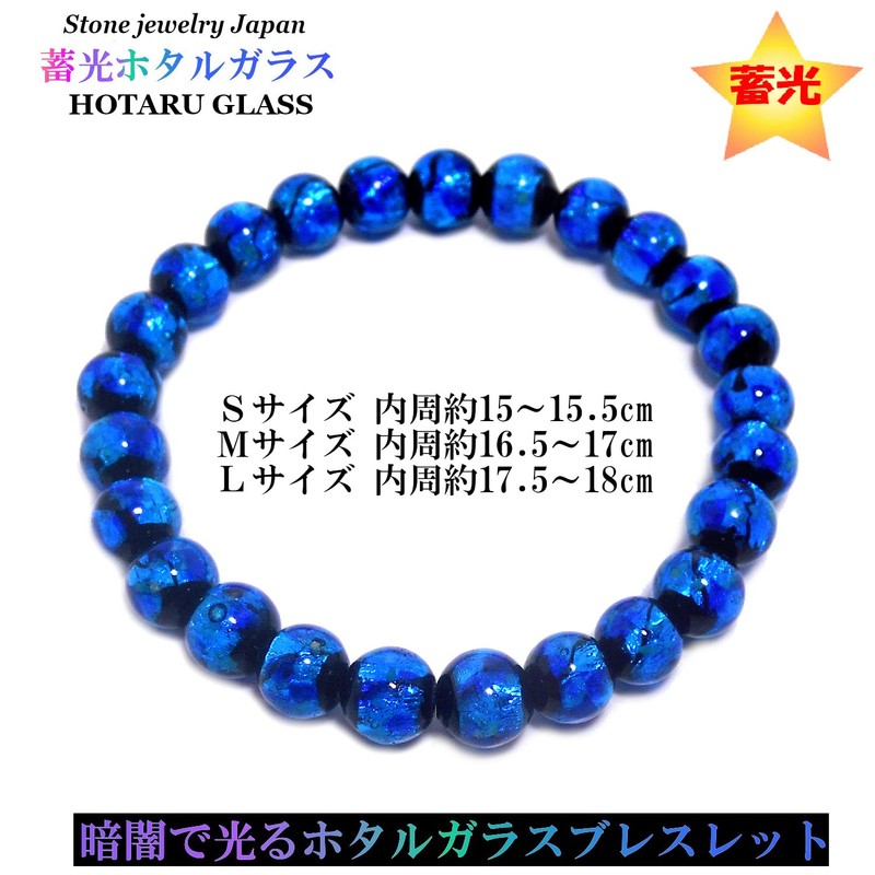 Stone jewelry japan Luminous in the Dark Firefly Glass 0.3 inch (8 mm) Okinawa Souvenir Popular Bracelet, Glass