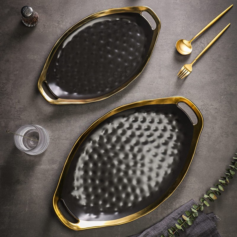 - GLAMOROUS SERVING SET: Gold borders and bold colour options make the Florian oval serving plates a show stopping choice