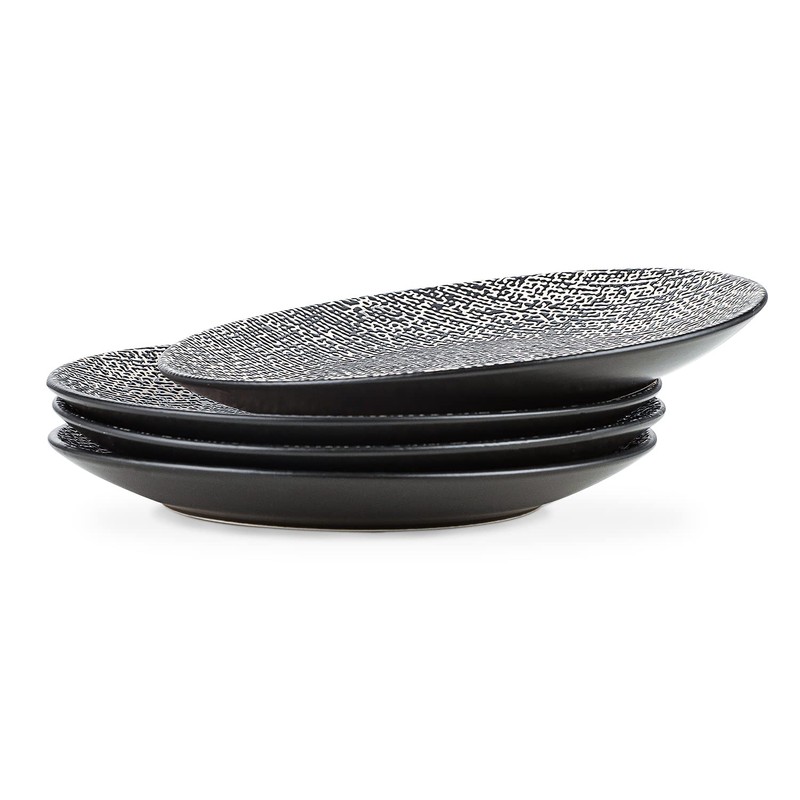 Stone Lain Stoneware Dish Set, 4 Dinner Plates, Sophie - Brown and Black