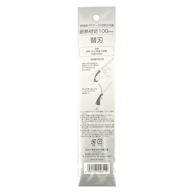 • Specially designed for cutting insulation (urethane foam, glass wool, etc.), Styrofoam, Cardboard, Rope. Not suitable for regular wood