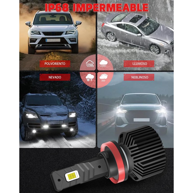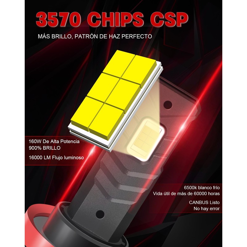 - 【900% más brillantes que los halógenos】Las bombillas LED H11 H8 H9 incorporan chips 3570, que proporcionan hasta 32000 lúmenes de brillo, 320 W por par, 6500 K de blanco frío, lo que le proporciona una mejor visibilidad y mejora su seguridad al conducir de noche.