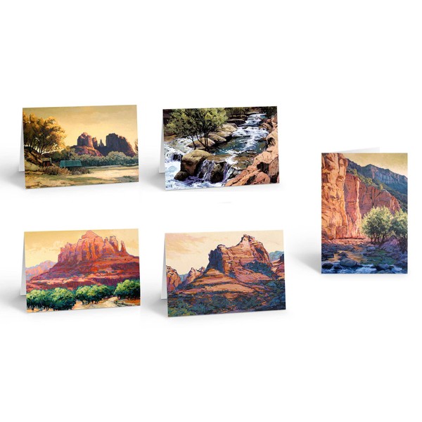 - Enjoy these beautiful scenic paintings of Sedona, Arizona. It's unique red rocks give a picturesque view in any direction you look. Let these note cards take you away to a spiritual healing place.