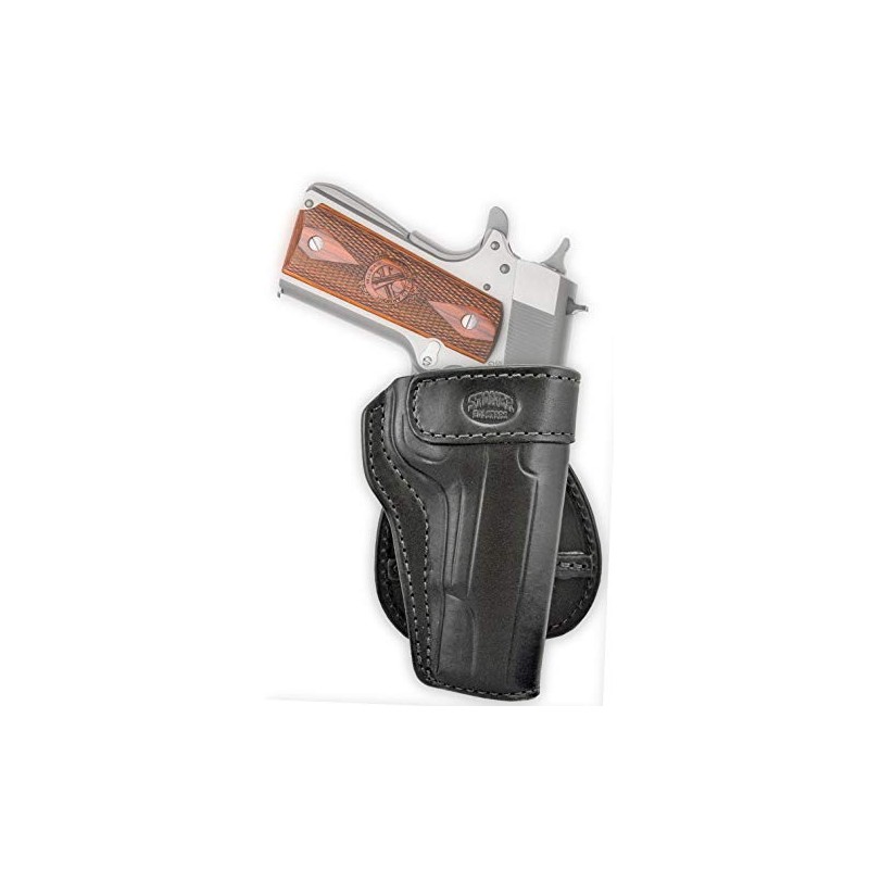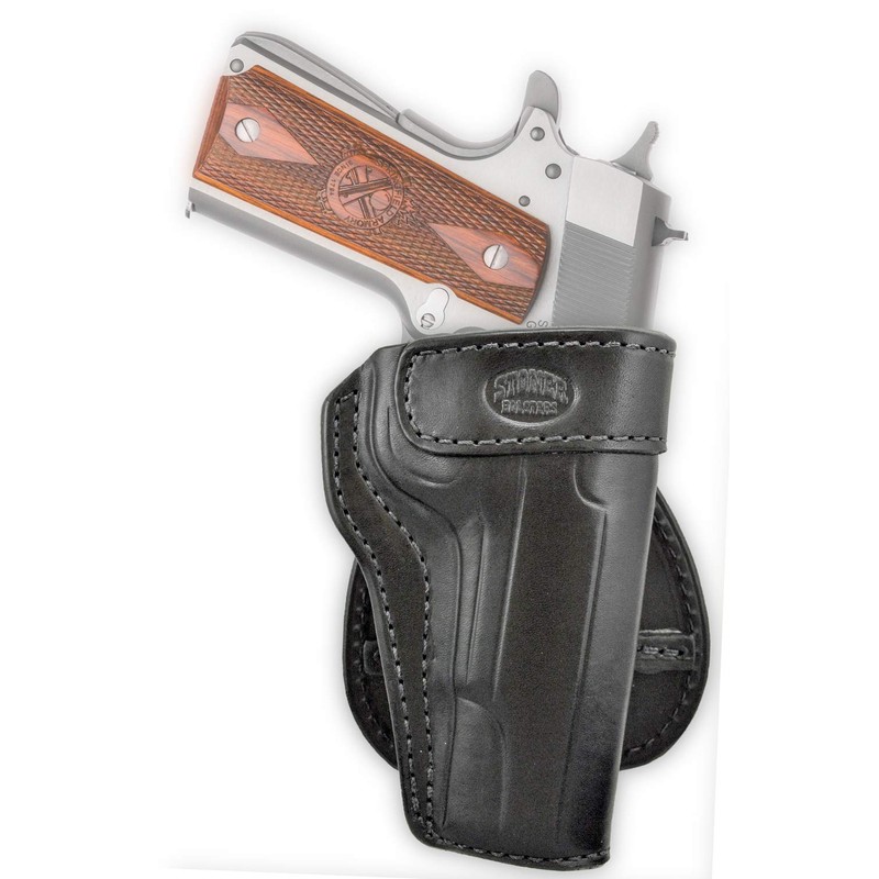 When convenience is important the Leather Paddle Holsters made by Stoner Holsters is a popular choice. The flexibility of being able to remove your holster without removing your belt or the worry of where your belt loops are is the reason many people choose this style of holster. With limitless positioning options the paddle holster is open topped for speed and combat grip accessible. Deep molded for excellent retention, covering the trigger guard for protection. Exceptionally comfortable the paddle holster contours to your body for stability and is suitable for all day use. The Paddle backing is attached with two screws and actually sits inside of your pants. The leather strip sewn onto the paddle will grab your belt from underneath to stabilize the holster and provide a reliable draw.