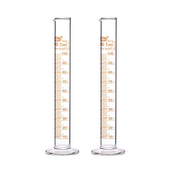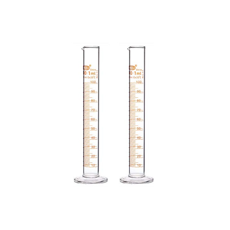 StonyLab 2-Pack 100ml Borosilicate Glass Graduated Cylinder Measuring Cylinder