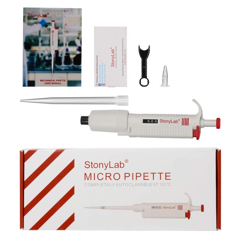 stonylab Single Channel Pipettor Controller, Adjustable Variable Volume Micropipette Pipette Pipet with Autoclavable Tip Cone for Laboratory Research, 1000-5000 µL