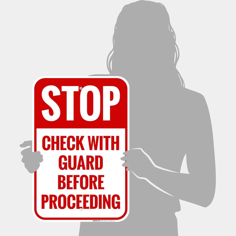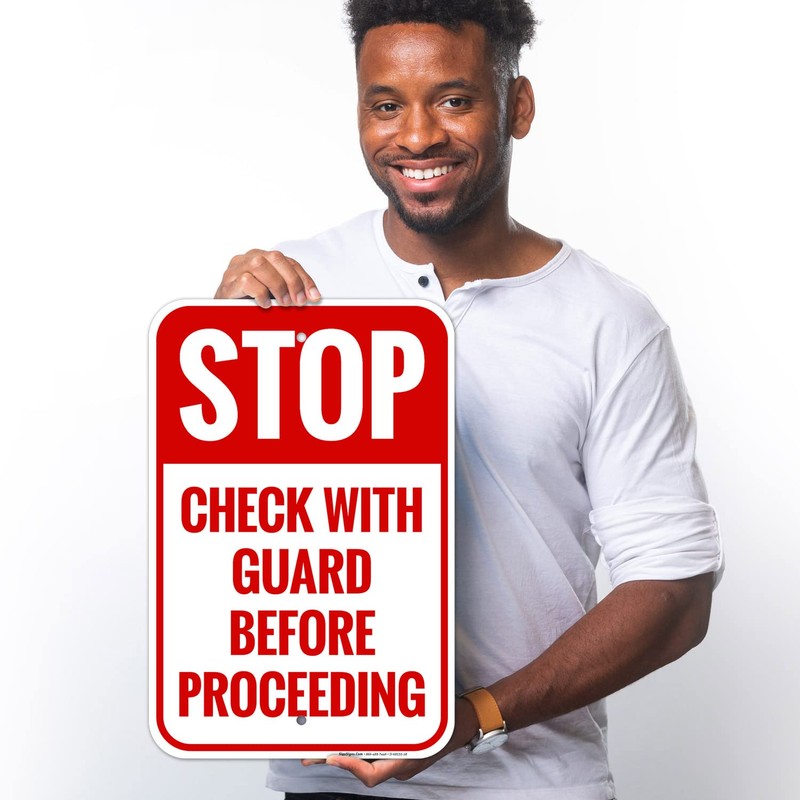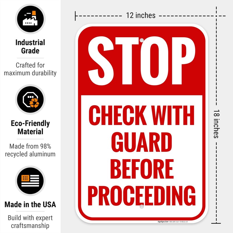 Stop Check with Guard Before Proceeding Sign, 12x18 Inches, Rust Free .063 Aluminum, Fade Resistant, Made in USA