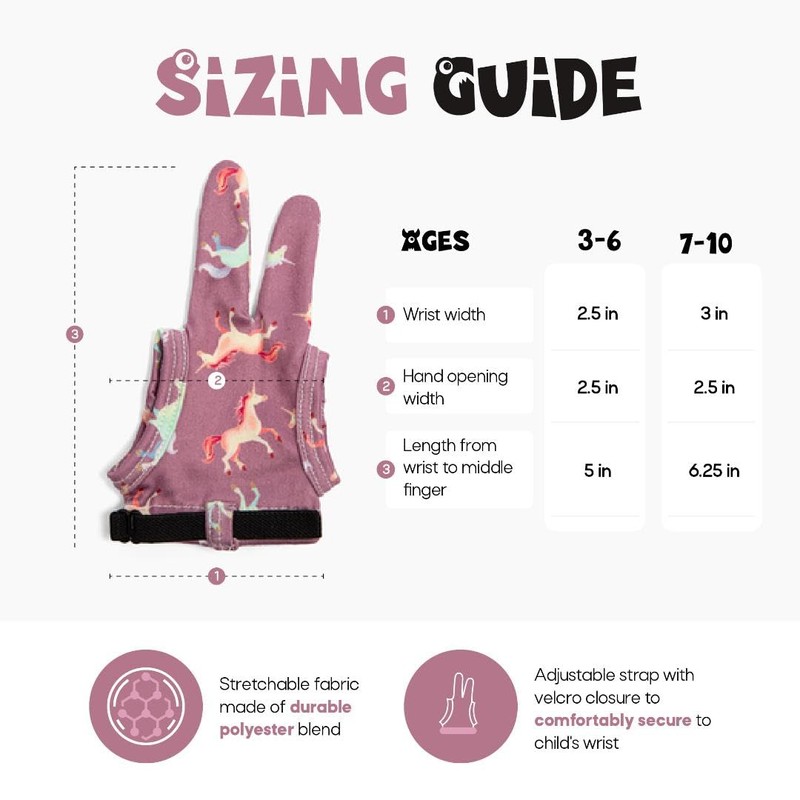 - **Assist with Breaking Bad Habits** Comfortable finger covering gloves will assist your child to stop biting their nails or sucking their thumb.
