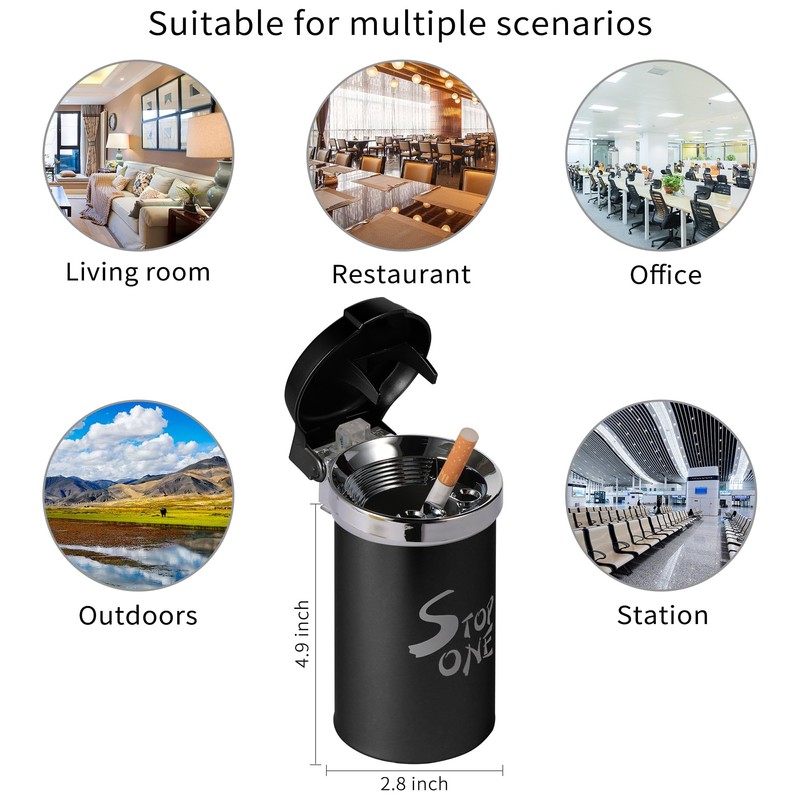 - [Flame retardancy]: Cover Part is Made of ABS flame retardant material, Ashtray part is tinplate metal, resistant to high temperature. Attention: for safety, do not forget to close the lid after use, because the unextinguished cigarette butts will still burn in an oxygen environment.