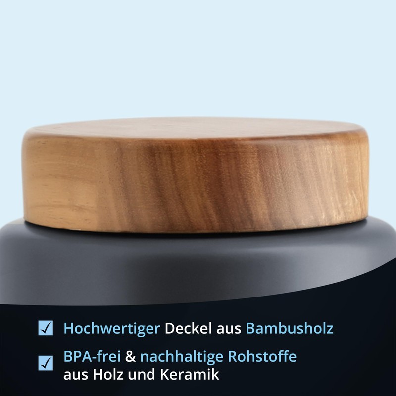 - Made of high-quality ceramic stoneware and a lid made of real bamboo wood, we rely on natural raw materials and environmentally conscious production. BPA free and sustainable - for a conscious choice in your kitchen.