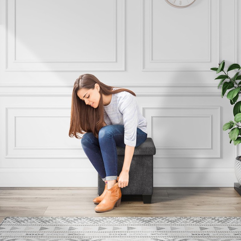 - Removable Legs: Our ottoman with storage for bedroom measures 15” L x 15” W x 15” H and folds flat when not in use. Adjust the height by adding or removing sturdy legs.