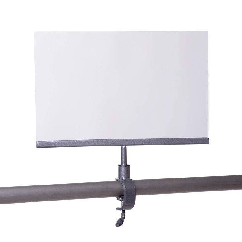 - Each sign holder comes in a 2 piece set; the acrylic card holder & the clamp base. Simply place the stem into the clamp base then turn the screw on the clamp to tighten the sign holder onto the rack.