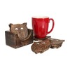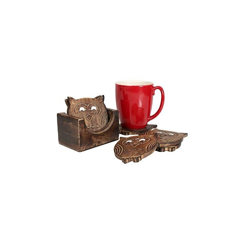 STORE INDYA Set of 6 Wooden Owl Shaped Drink Coasters with Holder Kitchen Dining Accessory