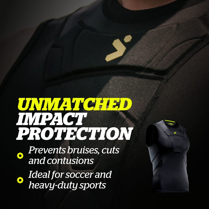 - ARMORED SLEEVELESS UNDERSHIRT: Premium protective base layer for soccer players, armored with heavy-duty yet flexible 3mm XRD Extreme Impact Protection materials designed to shut down distractions and prevent cuts, bruises, and contusions.