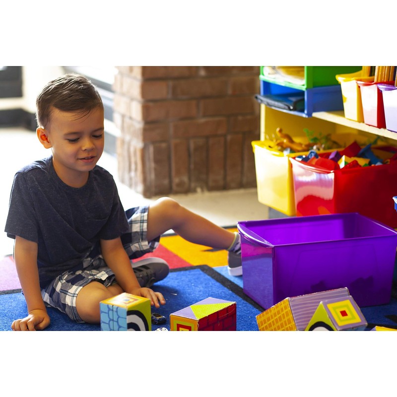 Storex Extra-Large Book Bin, Interlocking Plastic Organizer for Home, Office and Classroom, Yellow, 6-Pack (71132U06C)