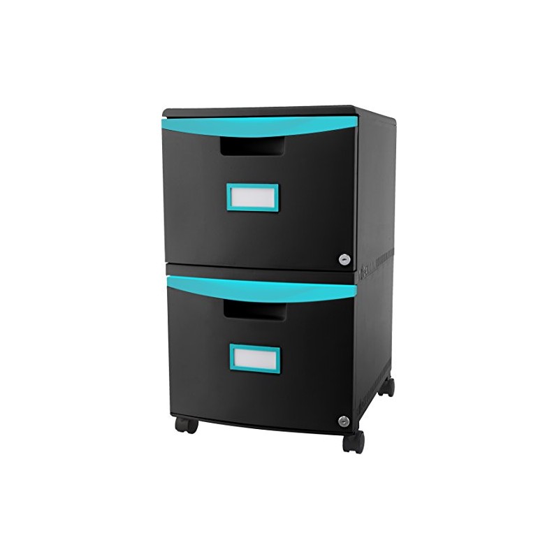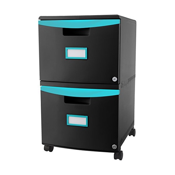 Storex Plastic Two-Drawer File Cabinet – Locking Document Organizer with Casters for Home and Office, Black, 1-Pack (61315U01C)