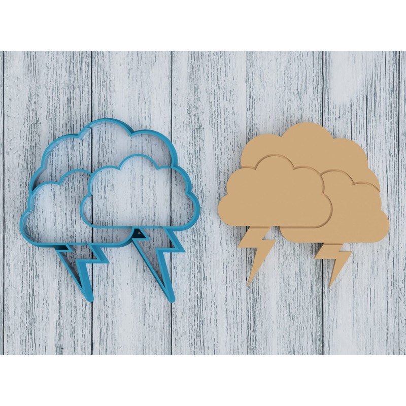 Storm Cloud with Lightning Cookie Cutter - Thunder Lightning Bolt Weather Storm Rain (0036) (4 Inch)