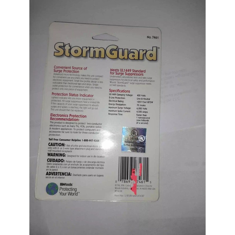 Storm Guard Electronics Surge Protector #7461 2 Line Protection Max 6000 Volts