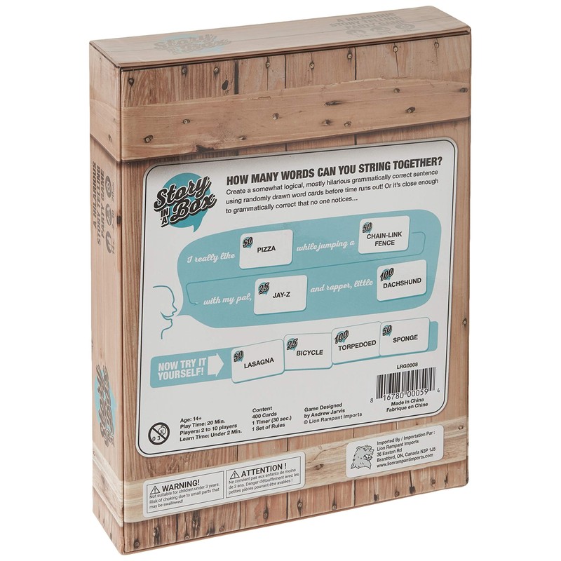 - Story in a Box is a quick-thinking, sentence building game for the family (ages 12 and up)