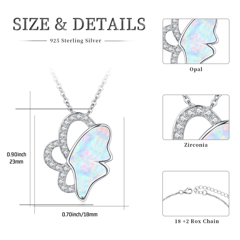 StoryMidir Butterfly Necklace, 925 Sterling Silver Opal Pendant Necklace for Women, Cute Animal Charm Jewelry, Butterfly Pendant Necklace, Sterling Silver
