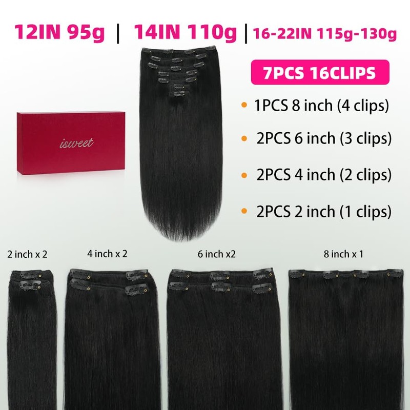 - 🍄【Diverse Specifications】 Invisible clip in hair extensions human hair comes in different sizes , such as 12 inch/95g, 14 inch/110g, 16 inch/115g, 18 inch/120g, 20 inch/125g and 22 inch/130g. If your hair is short, then you will be more suitable to choose of 14 inch or 16 inch. real human hair extensions clip ins. if your hair is long, then you will be more suitable to choose of 22 inch. hair extensions real human hair clip ins.