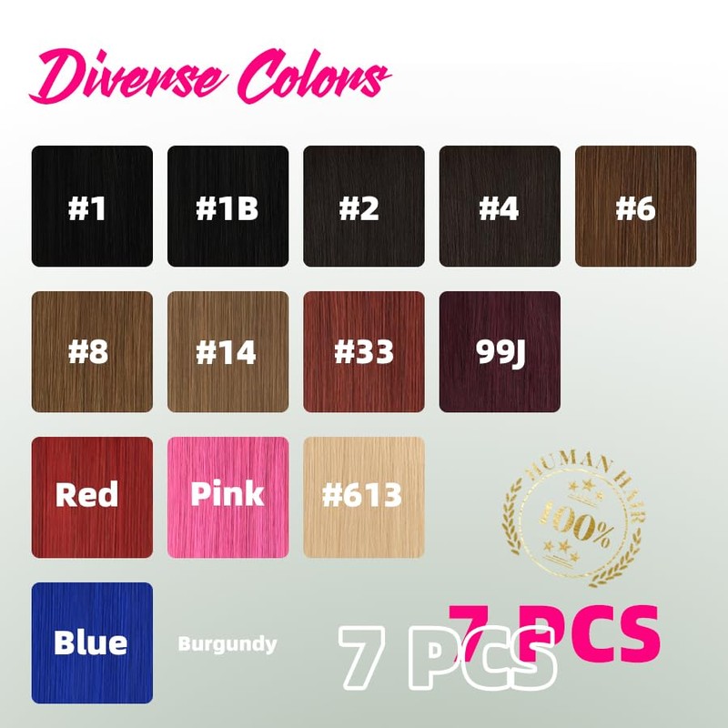 - 🌴【Diverse Colors】 Seamless clip in hair extensions human hair are available in 14 colors, so we can satisfy your need for colors. The real human hair extensions clip ins main selling colors are #1B Natural Black, #2 Dark Brown and #613 Bleach Blonde. If you are confused about hair extensions real human hair clip ins colors, our customer service will choose the most suitable colour for you.