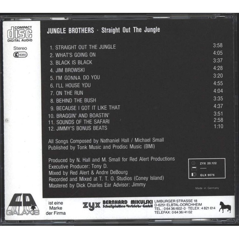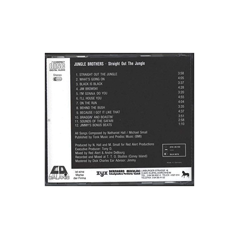 Jungle Brothers: Straight Out The Jungle CD - CD, released 1988 in Germany by Galaxis (GLX 9076), no barcode -- Genre: Hip Hop
