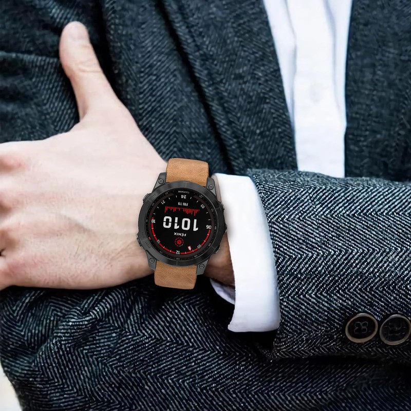 - 【Compatible Models】22mm Leather Strap for Garmin Fenix 8 47mm/Fenix 5/Fenix 5 Plus/Fenix 6/Fenix 6 Pro/Fenix 7/Fenix 7 Solar/Fenix 7 Sapphire Solar/Forerunner 935/Forerunner 945/Garmin Instinct/Instinct Tactical/Instinct Tide/Approach S62/Approach ach S60 Quatix 6/Quatix 5/EPIX 2/MARQ Expedition/Athlete/Driver/Aviator/Captain (Not compatible with Fenix 7X/6X/5X/6X Pro/7S/6S/5S!!!!)