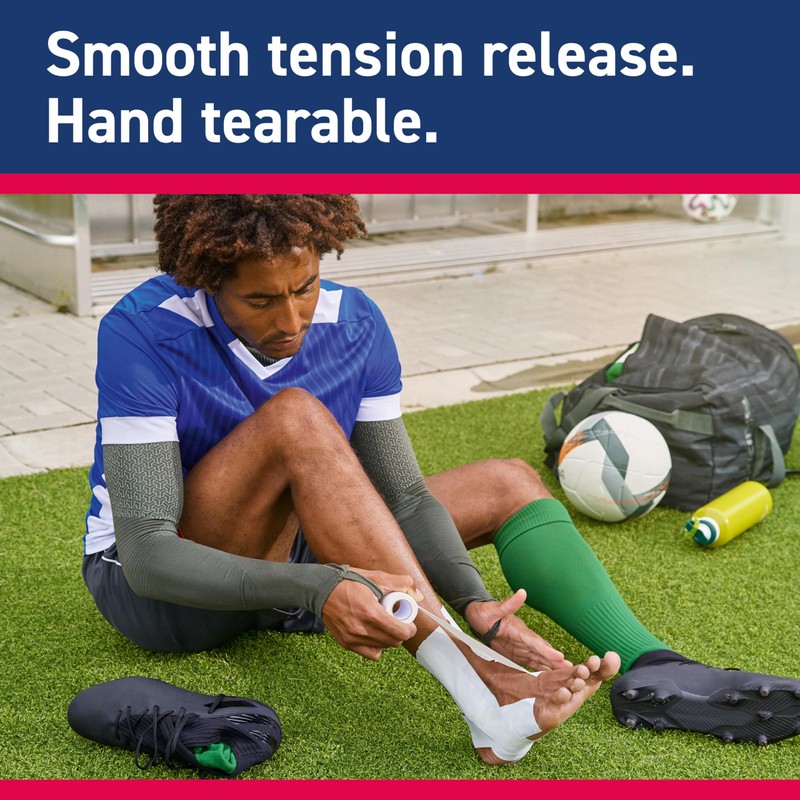 Strappal is a rigid medical tape that helps treat and prevent sports injuries. It provides strong support for muscles, ligaments, and joints, as well as ensures rigid immobilisation for strains and sprains. This sports tape is crafted from durable viscose fabric with serrated edges to prevent fraying. Hand tearable in any direction for easy application and suitable for use by both healthcare professionals and patients. Strappal is intended for single application use only and is non-sterile. Each roll is wrapped around a cardboard core for easy use and storage.
