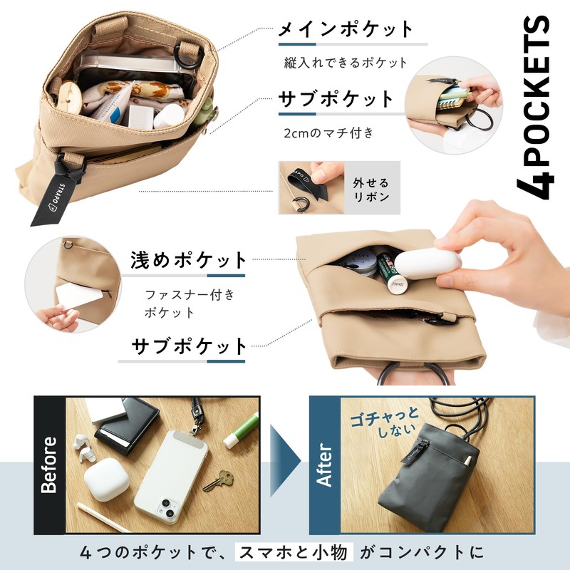 - Storage Capacity: Comes with a gusset, so it has a larger capacity than it appears. In addition to the main pocket that can store your smartphone or coin purse, it also comes with 2 sub-pockets, and a zippered pocket that allows you to easily access small items. Carry all your personal accessories and valuables together with one strapo