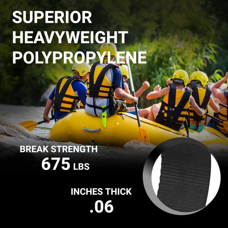 - UTILITY WEBBING - This strapping is water, UV resistant and won't stretch like nylon does. Suitable for outdoor use, this heavyweight webbing is a must-have when camping, boating, rafting and more.