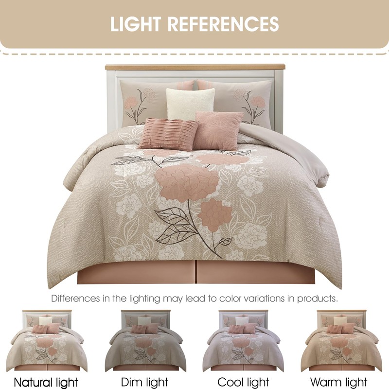 Stratford Park Wonderful 7 Piece Comforter Set, Queen Size, Blush, Modern Design, Matching Bedskirt, Pillows & Shams