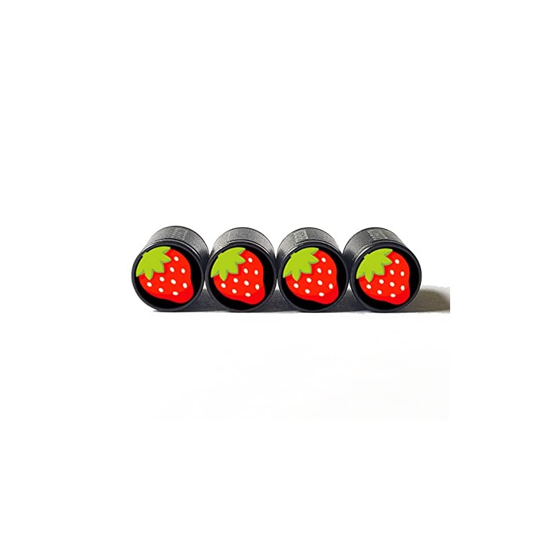 Strawberry Tire Valve Caps - Black Aluminum - Set of Four