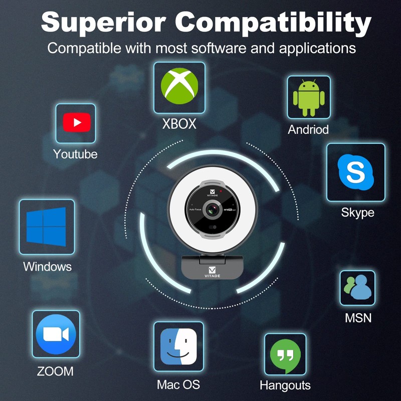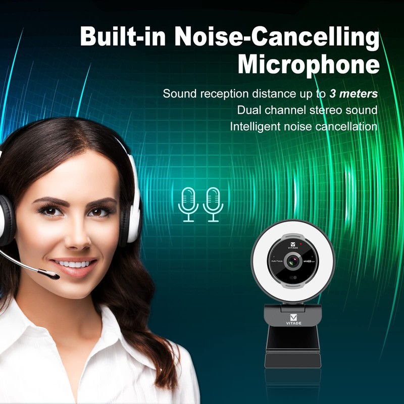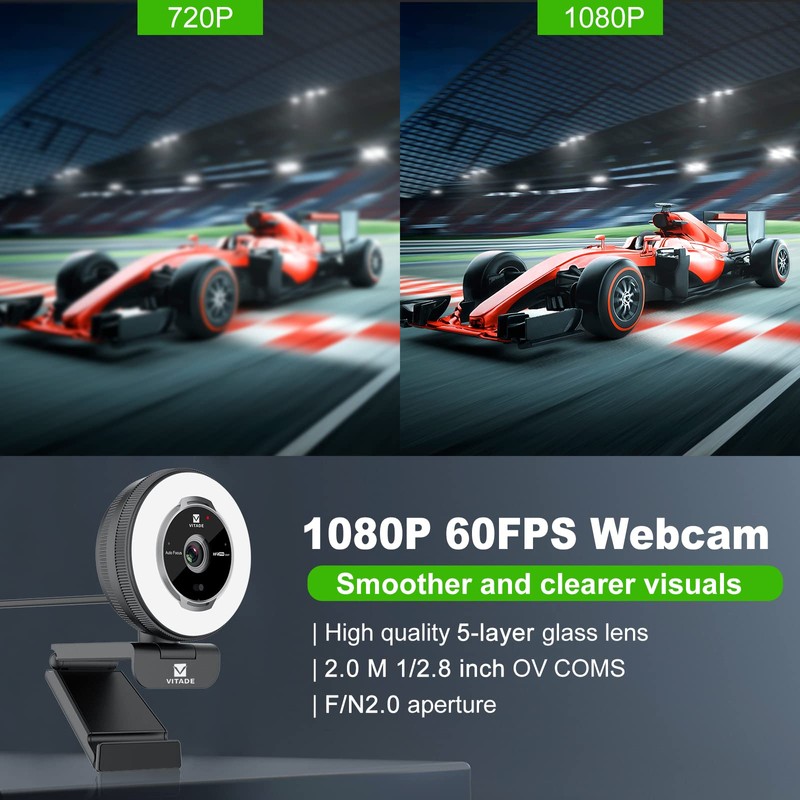 • 【60fps Smooth Streaming】VITADE 862Pro webcam is designed with 1080p FHD at up to 60 frames per second. With 2.0m, 1 2.8 inch OV COMS, 5 layer Taiwan craft glass lens, the image quality is clearer and the color: is richer. F N2.0 large aperture. Light input, brighter image quality. Automatic correction in low light conditions. With real time autofocus, you never have to worry about adjusting the focal length.