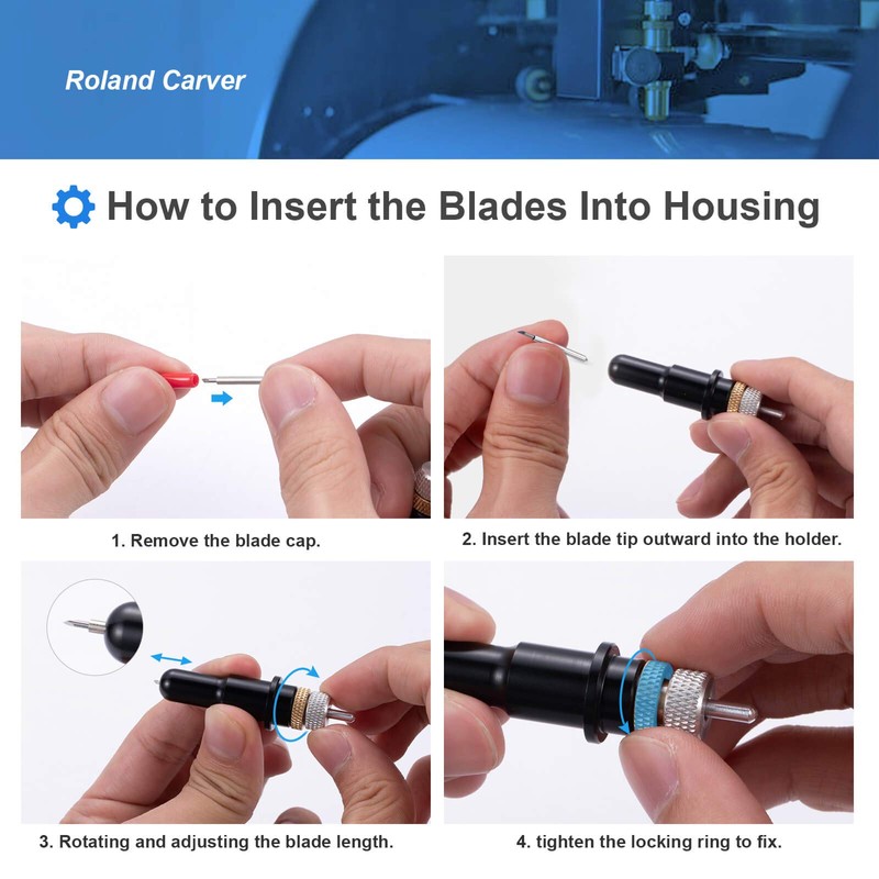 - Consejos cálidos: las cuchillas de repuesto Cricut Explore Air no ajustan automáticamente la profundidad del corte. Si está utilizando diferentes tipos de cuchillos de corte o materiales, longitud extendida la punta de la hoja en consecuencia. Después de ajustar la punta, haga una prueba.