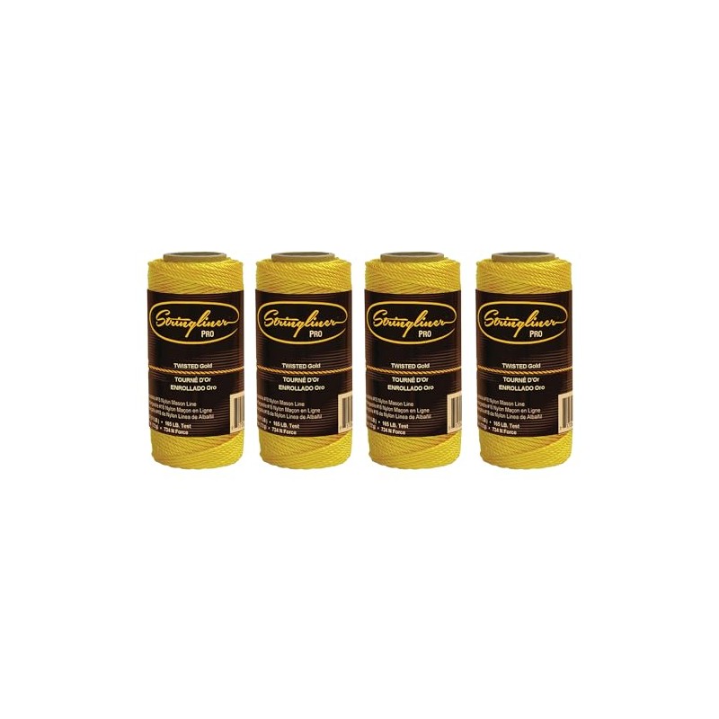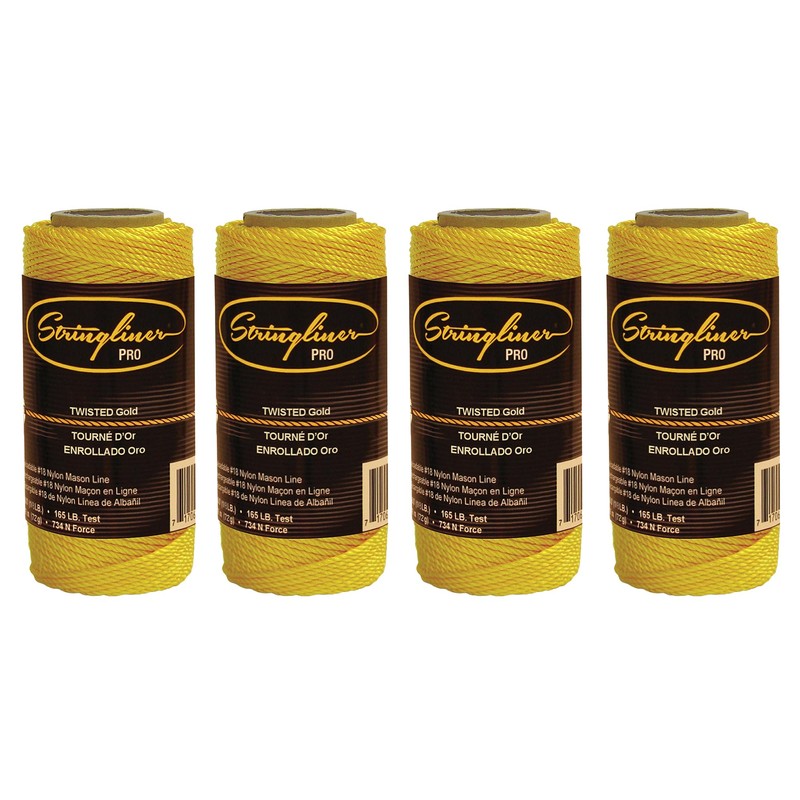 Stringliner 35000 Mason’s Line Replacement Rolls – 1/8 Lb. #18 Construction Replacement Roll Twisted Gold 135'. (4 Pack)