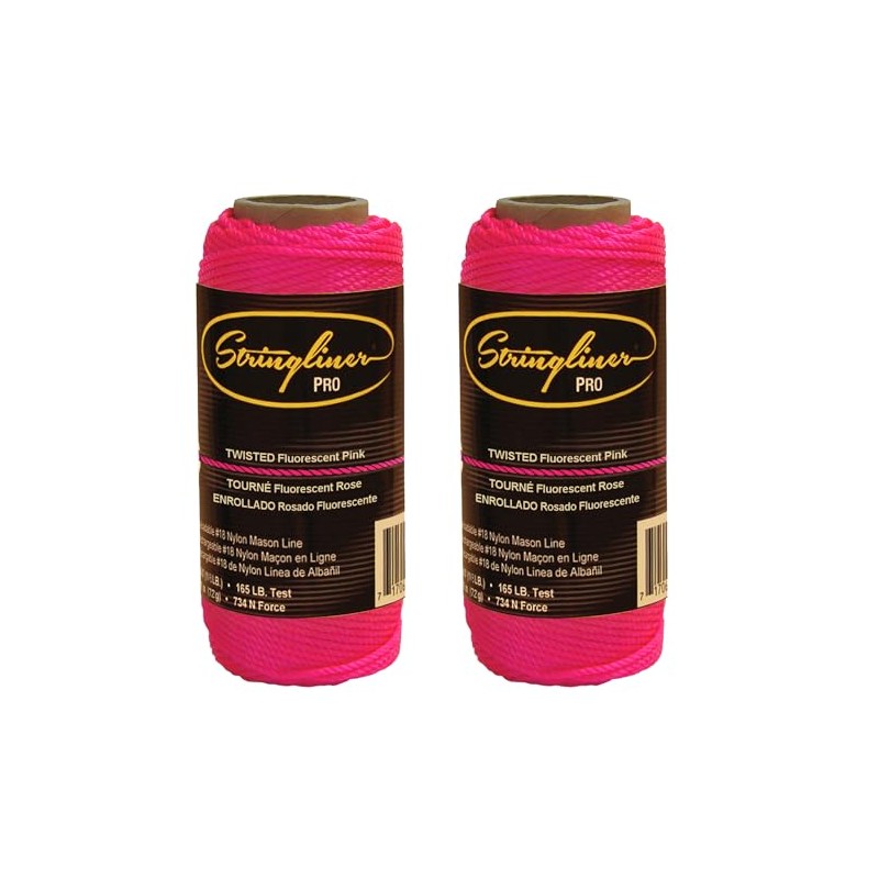 Stringliner 35009 Mason’s Line Replacement Rolls – 1/8 Lb. #18 Construction Replacement Roll Twisted FL Pink 135'. (2 Pack)