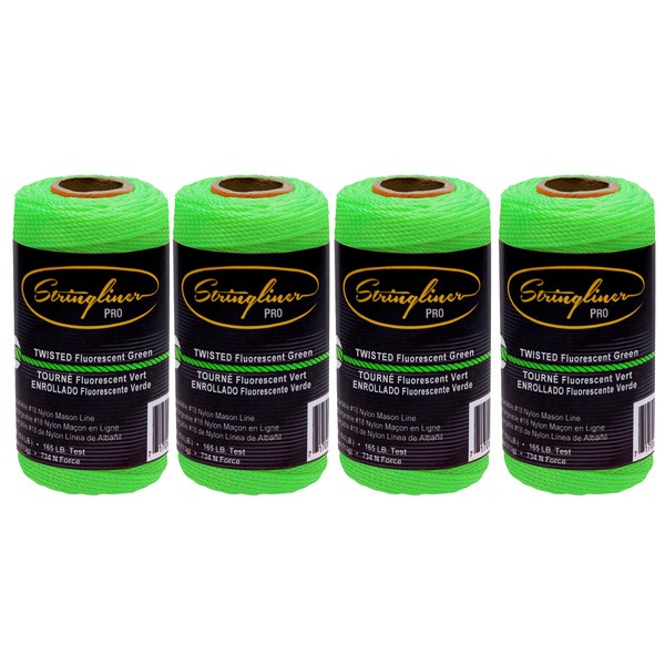 Stringliner 35115 Mason’s Line Replacement Rolls – 1/4 Lb. #18 Construction Replacement Roll Twisted FL Green 270'. (Pack 4)