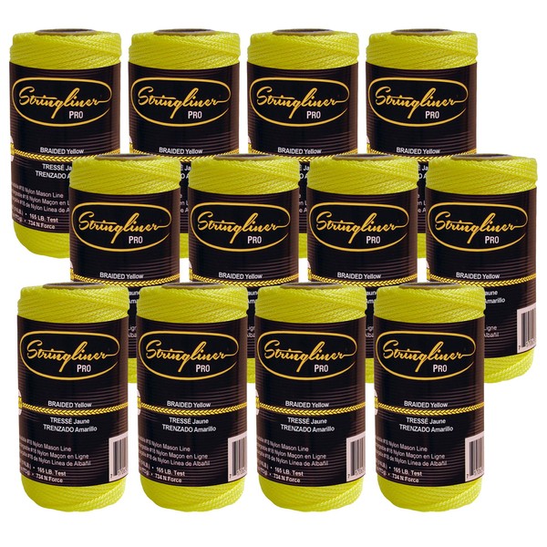 Stringliner 35150 Mason’s Line Replacement Rolls – 1/4 Lb. #18 Construction Replacement Roll Braided Yellow 250'. (12 Pack)